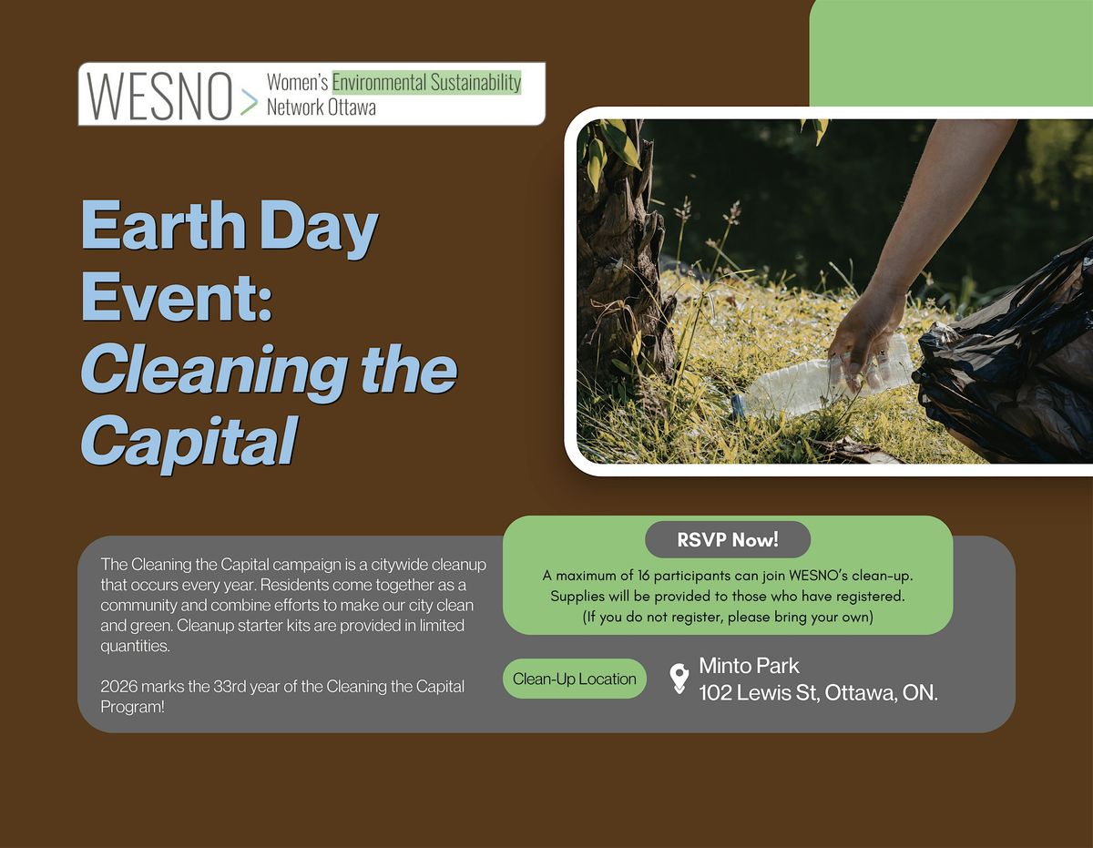 WESNO will be hosting a clean-up of Minto Park for this year's Cleaning the Capital Program run by the City of Ottawa. Kits will be provided to those who register here to assist in the litter pick-up. Please note, in the case of inclement weather, our rain date will be May 3, 2026 at 2pm.