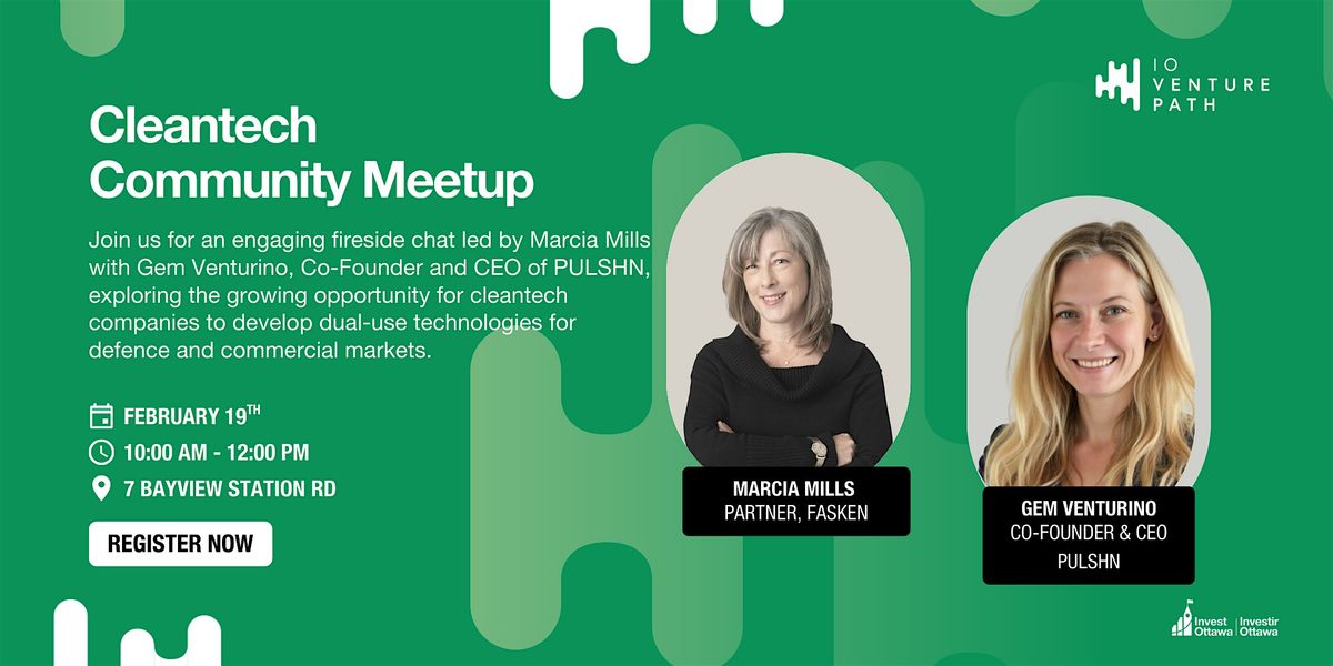 Led by Marcia Mills, Partner, Co-Founder, and Co-Lead of Fasken’s National Security Group, this fireside chat features Gem Venturino, Founder of Pulshn. Marcia brings deep expertise in defence, national security, and government contracting, and will guide a timely conversation on the growing opportunities for cleantech companies to explore dual-use technologies for commercial and defence applications.