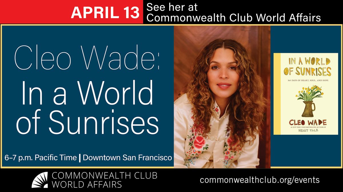 Bestselling author Cleo Wade returns to Commonwealth Club World Affairs with a hug of a book—her latest, In a World of Sunrises, a collection of poetry, prose and inspirational quotes providing uplift and comfort for 365 days.
