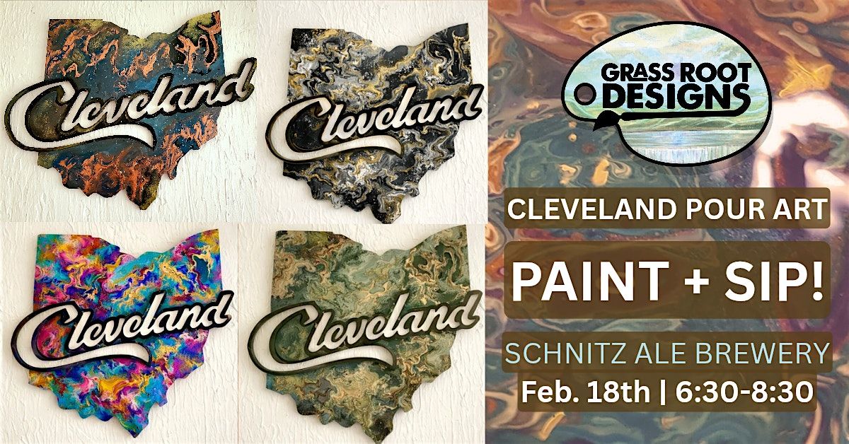 Bring your own Cleveland Ohio wooden cut out to life in the colors of your choice while acrylic pouring!