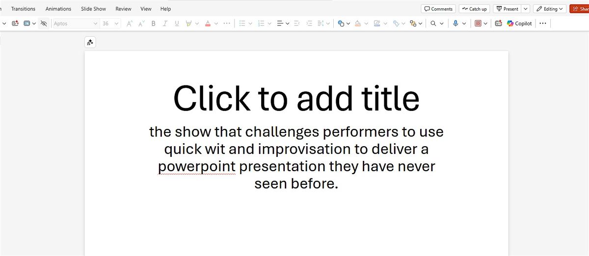 A show that challenges performers to use quick wit and improvisation to find humor in a powerpoint presentation they have never seen.