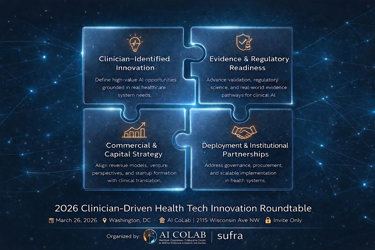 Join us for an exclusive convening at the Georgetown University – MedStar Health AI CoLab, bringing together leaders across healthcare, AI,About this Event