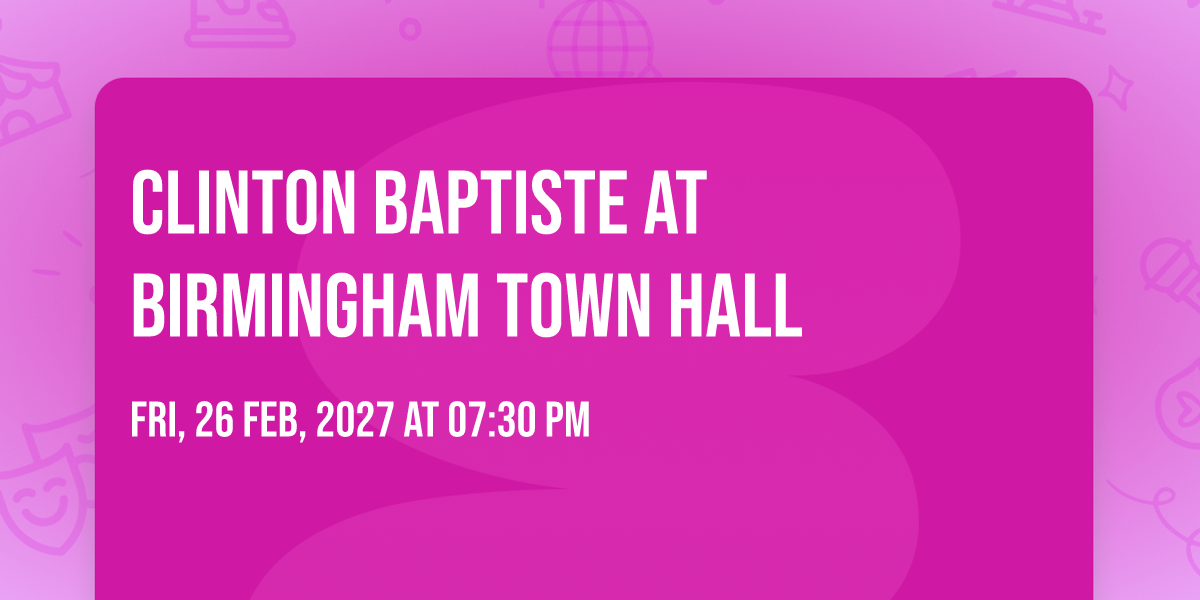 β¨ Enter a world of endless possibilities at Clinton Baptiste at Birmingham Town Hall, where every moment tells a story! ποΈ The stunning Birmingham Town Hall in vibrant Birmingham, EN transforms into a realm of wonder on February 26th, 2027 at 07:30 PM. π They have crafted an experience that goes beyond the ordinary, combining elements of surprise, delight, and pure entertainment. Every detail has been thoughtfully considered to ensure your journey with us is nothing short of extraordinary. π― Join fellow adventure seekers and memory makers in this celebration of imagination and innovation. π Reserve your spot today and be part of something truly special!