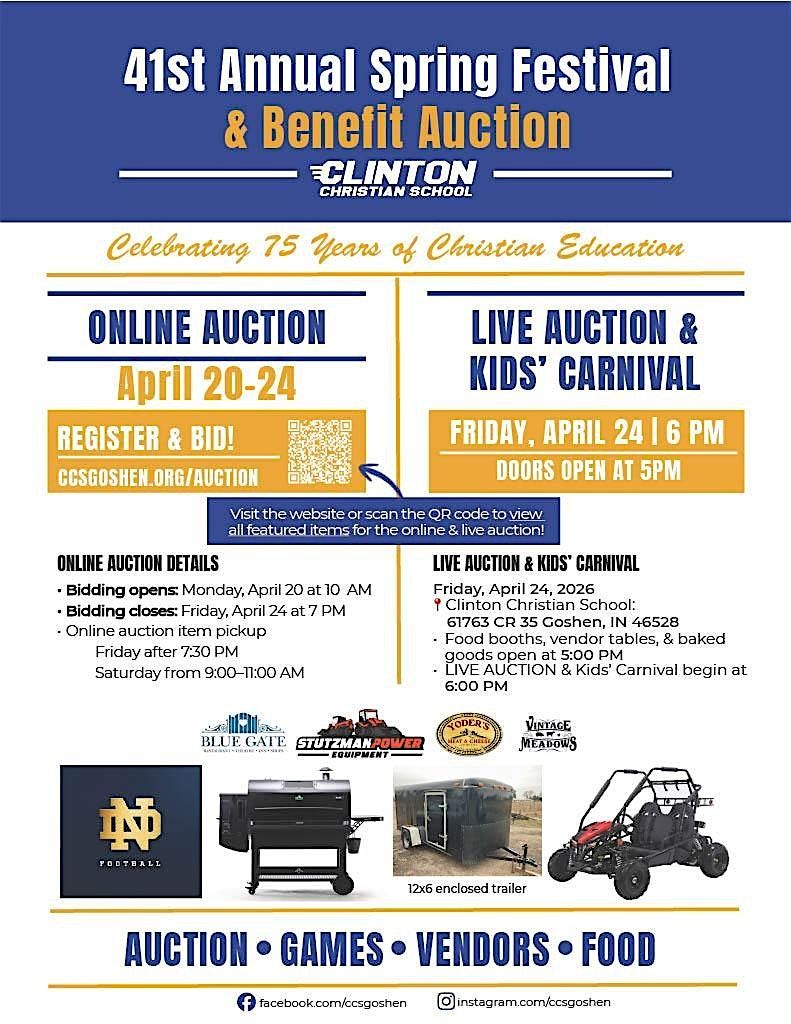 Live auction, kids carnival, food booths, vendor tables , bake sale, games