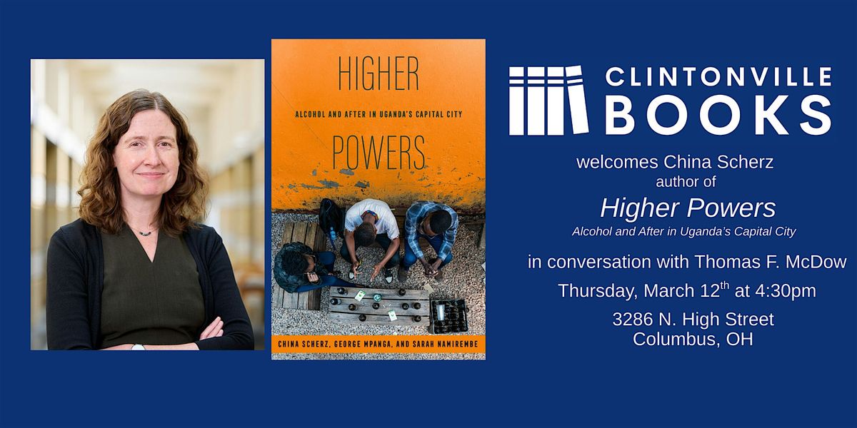 Join us Thursday, March 12 as we welcome China Scherz, author of Higher Powers: Alcohol and After in Uganda’s Capital City, in conversation with Thomas McDow.