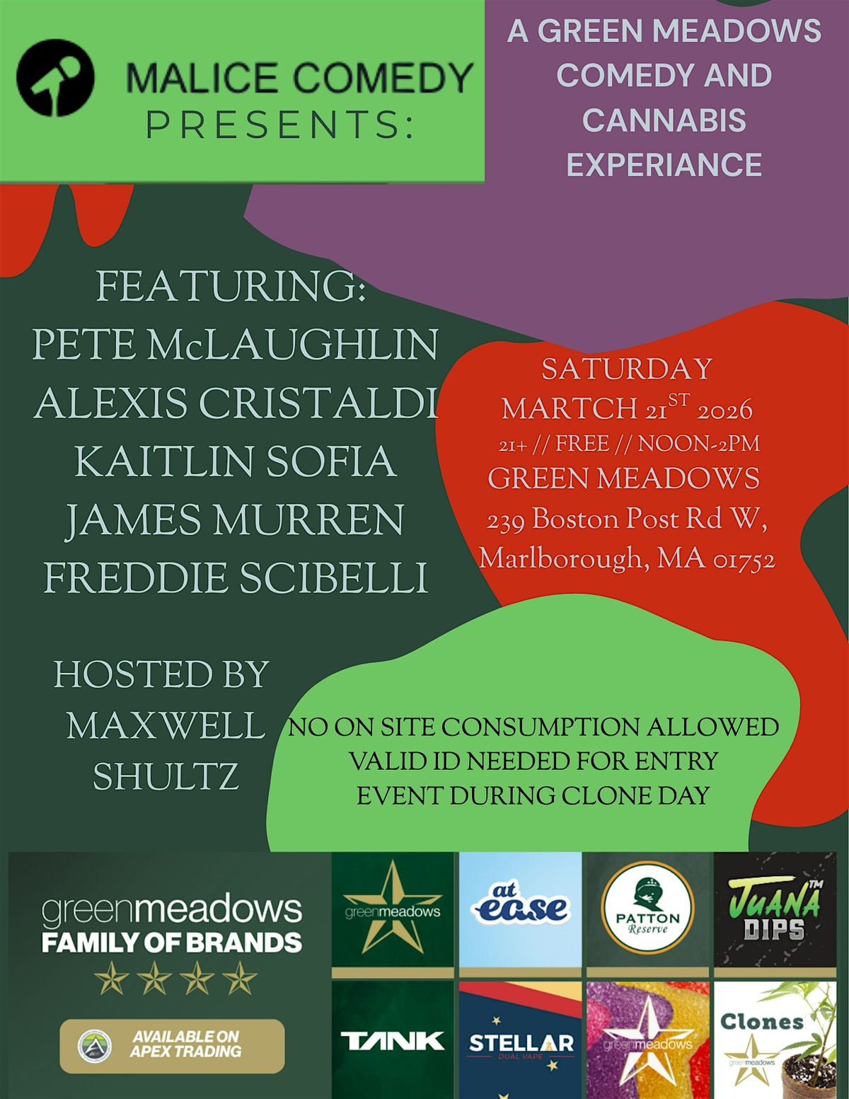 On Green Meadows' March Cloning day, we bring you 2 hours of free comedy! Joining us, will be Pete McLaughlin, Alexis Cristaldi, James Murrin, Kaitlyn Sofia, and Freddie Scibelli!