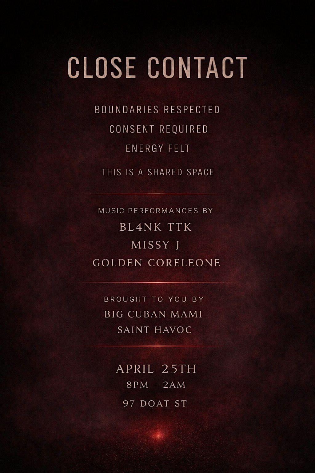 CLOSE CONTACT is an intimate, curated experience centered on BIPOC queer presence, connection, and shared energy.