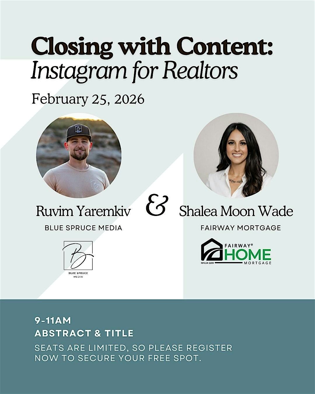 Join us for a practical, no-fluff workshop designed specifically for real estate professionals who want Instagram to actually support their business… not just eat up their time.