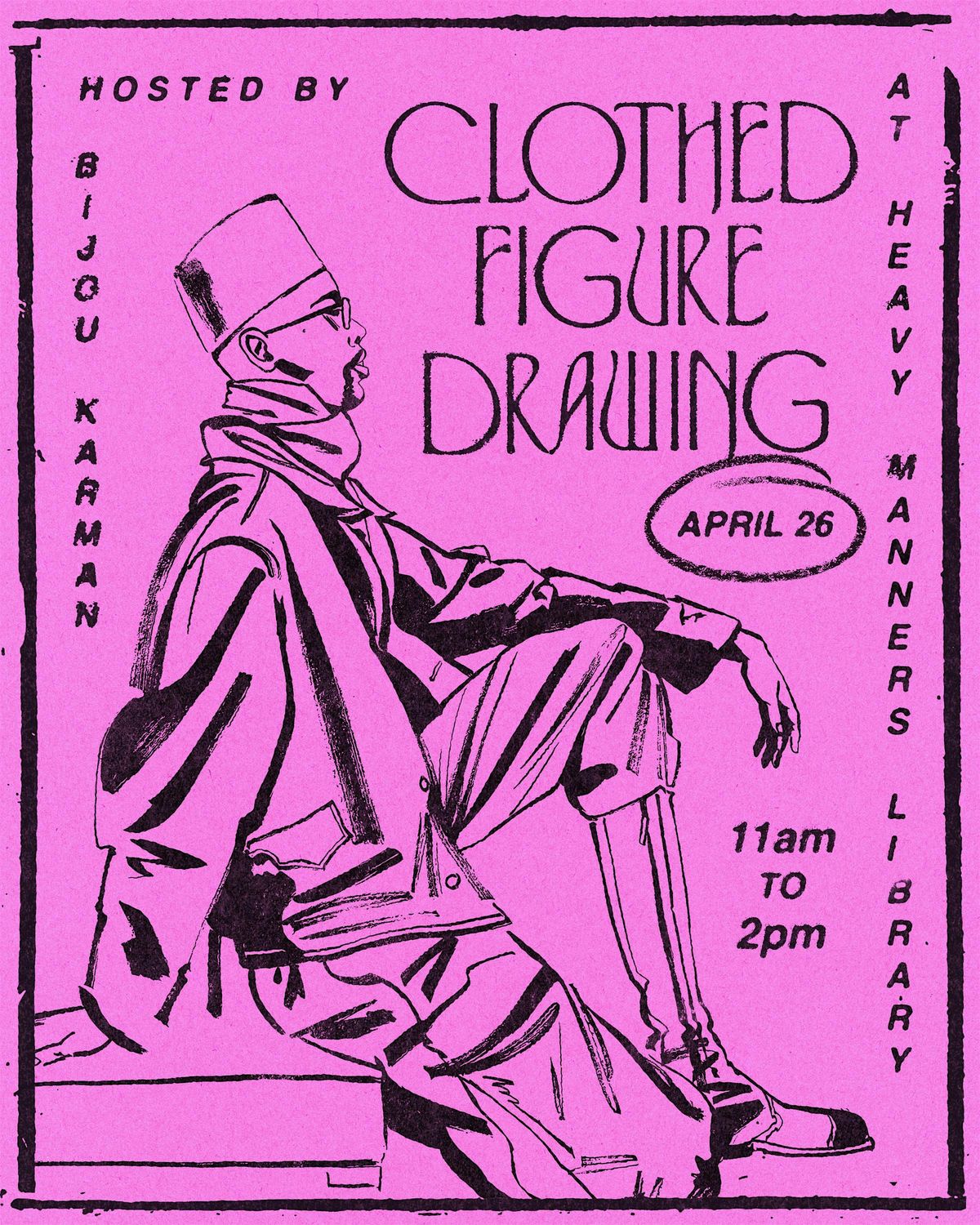 Join us for Heavy Manners Library's recurring life drawing session. The sessions will last for 3 hours, with one model doing various poses for different lengths of time. We will have chairs and drawing boards for participants, but we ask guests to bring their own paper and drawing/painting materials. Free refreshments will be available to participants as well.