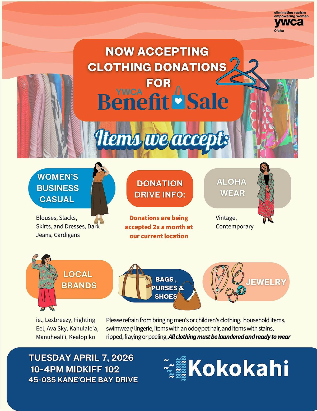 Donate pre-loved clothing for our monthly benefit sale! Donations support programs at YWCA KokokahiAbout this Event