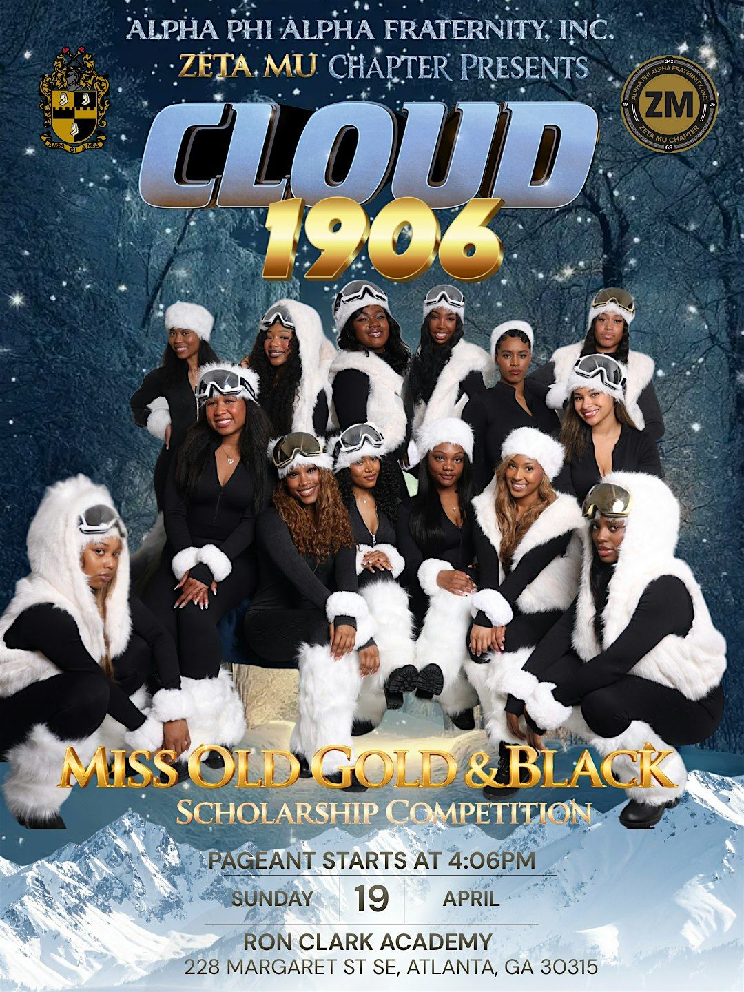 Step into Cloud 1906 at the Miss Old Gold & Black Scholarship Pageant, presented by the Zeta Mu Chapter of Alpha Phi Alpha Fraternity, Inc. This elevated ski-resort inspired experience blends elegance, tradition, and excellence in a night dedicated to scholarship and leadership. Attendees can expect dynamic contestant showcases, talent and formal wear competitions, inspiring storytelling, live entertainment, and high-energy audience engagement. The event highlights the legacy of the first queen, Miss Denise Smith, while celebrating a new generation of trailblazing leaders. Guests will enjoy a refined atmosphere, memorable visuals, and meaningful moments centered on service, empowerment, and academic achievement. Join us for an unforgettable evening where style meets purpose, and watch excellence rise to the summit.