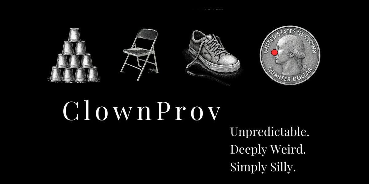 ClownProv is where new clown characters come to life — stumbling, failing, and figuring it out in real time, right in front of you.