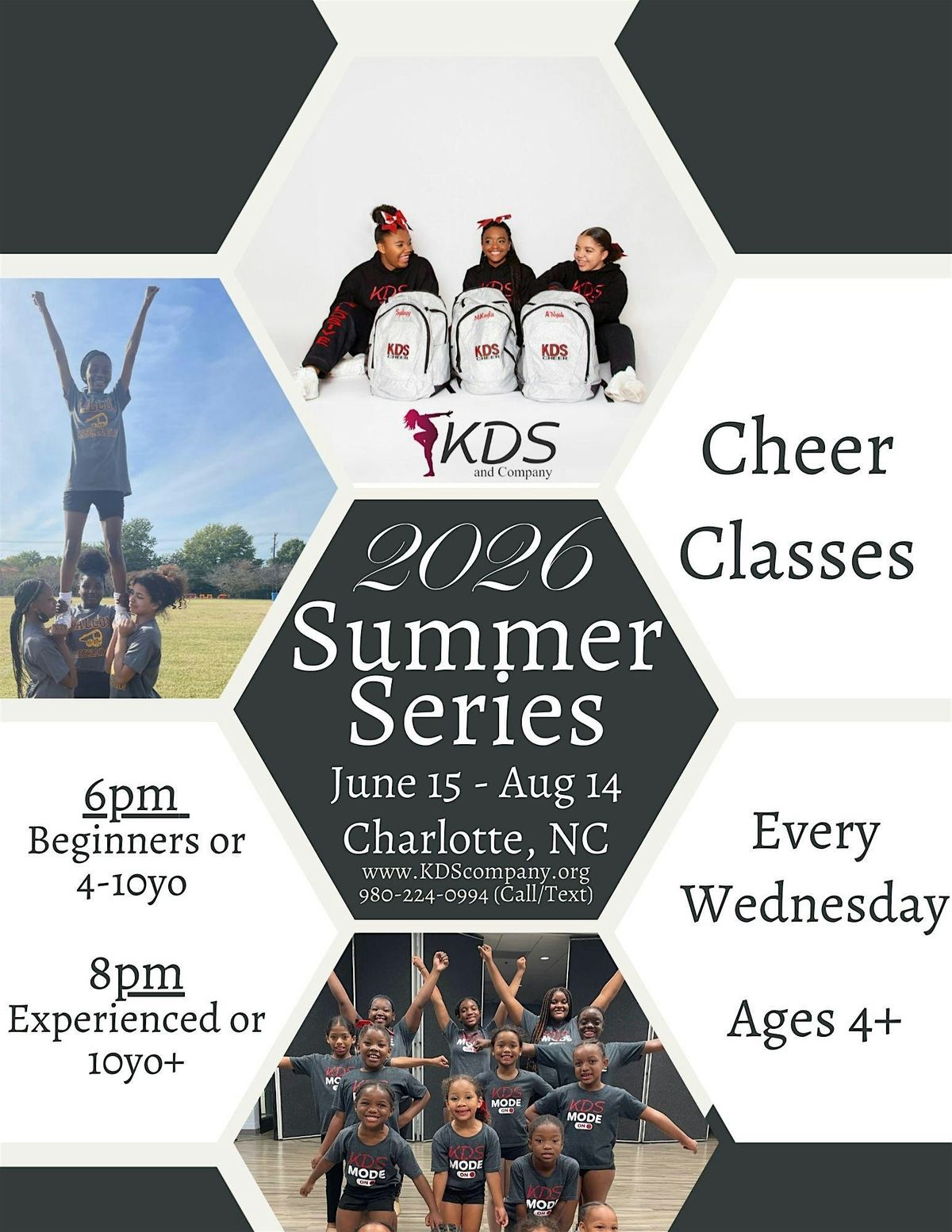 This summer cheer program with KDS begins June 17th at 6pm. This program focuses on building athleticism, team unity, and foundational shills through a blend of physical training and leadership development. From beginner-friendly to intensive style training, this program is a great way to enjoy the summer!