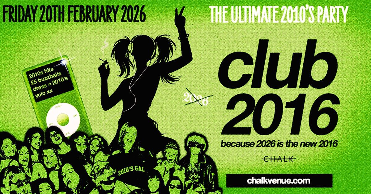 club 2016 a new monthly 2010's party @ chalk brighton has arrived - this time honouring 2016
