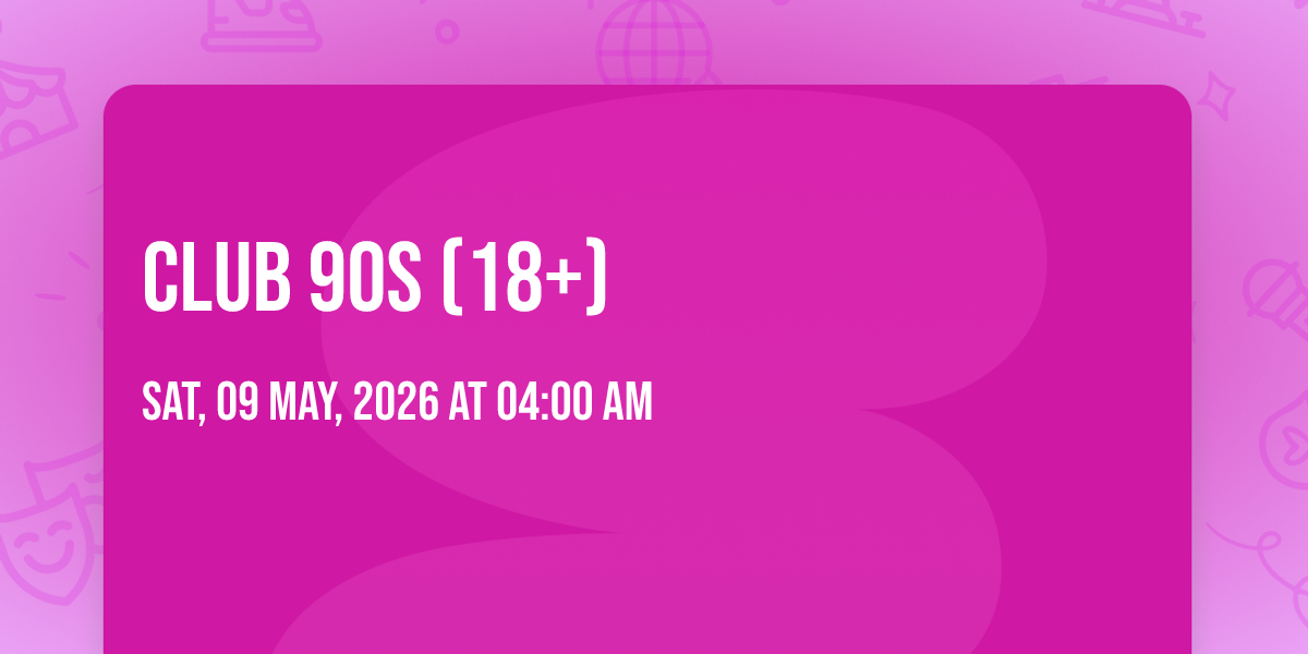 📍 Location: 34.0776, -118.261✨ Discover the extraordinary at Club 90s (18+), where magic meets reality in ways you've never imagined! 🏛️ Set in Echoplex nestled in bustling Los Angeles, CA, this event promises to be a landmark occasion. 📅 Taking place on May 9th, 2026 at 04:00 AM, it's going to create an atmosphere where every moment becomes a cherished memory. 🌟 Immerse yourself in an experience crafted with attention to every detail, designed to surprise and delight at every turn. They have worked tirelessly to ensure this event exceeds all expectations, bringing together elements of entertainment, innovation, and pure joy. 🎊 Don't miss your chance to be part of this remarkable journey!