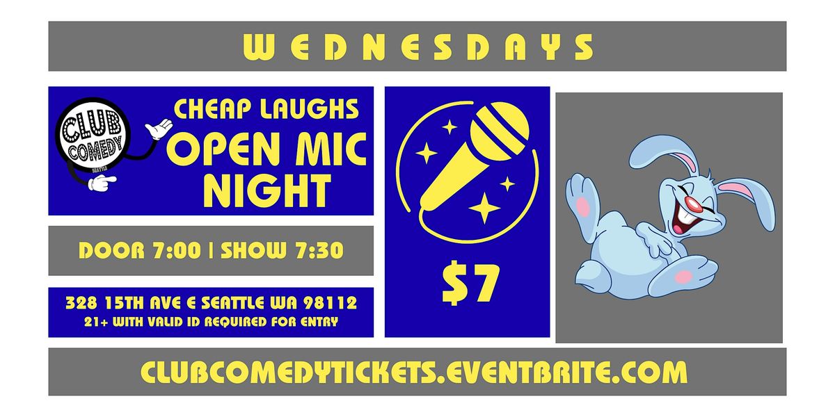 Club Comedy Seattle hosts our Weekly Stand-Up Comedy Open Mic Every Wednesday. Door 7:00PM/Show 7:30PM. Come see how the jokes are made.
