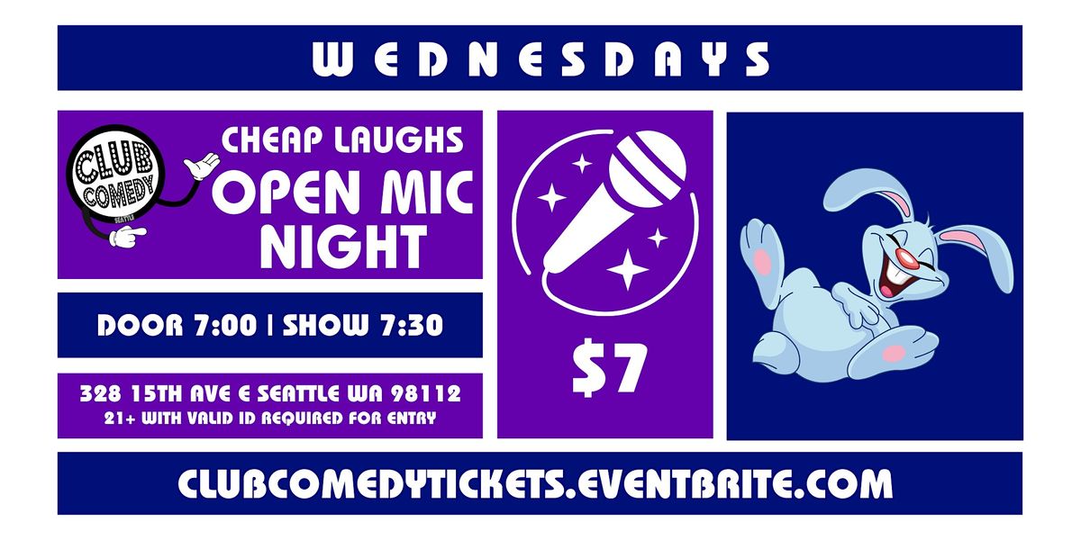 Club Comedy Seattle hosts our Weekly Stand-Up Comedy Open Mic Every Wednesday. Door 7:00PM/Show 7:30PM. Come see how the jokes are made.