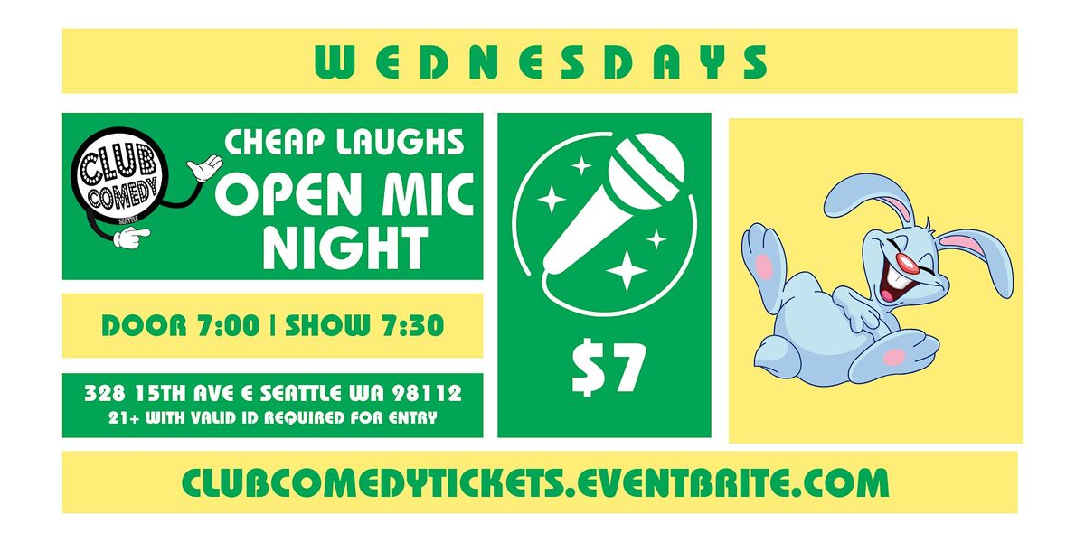 Club Comedy Seattle hosts our Weekly Stand-Up Comedy Open Mic Every Wednesday. Door 7:00PM/Show 7:30PM. Come see how the jokes are made.