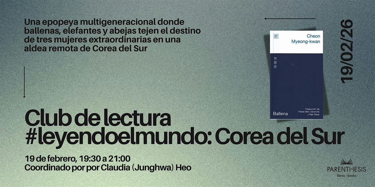 Esta vez, nuestro club de lectura #leyendoelmundo nos llevará a Corea del Sur. Hablaremos de Ballena de Cheon Myeong-kwan, una epopeya multigeneracional donde ballenas, elefantes y abejas tejen el destino de tres mujeres extraordinarias en una aldea remota de Corea del Sur.