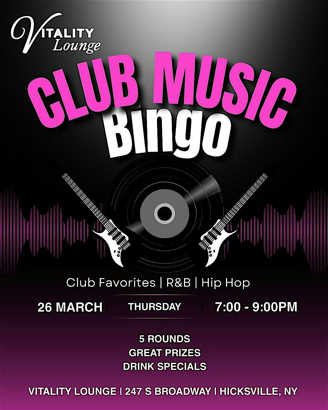 Turn up the volume and grab your crew β Club Music Bingo at Vitality is not your average bingo night!