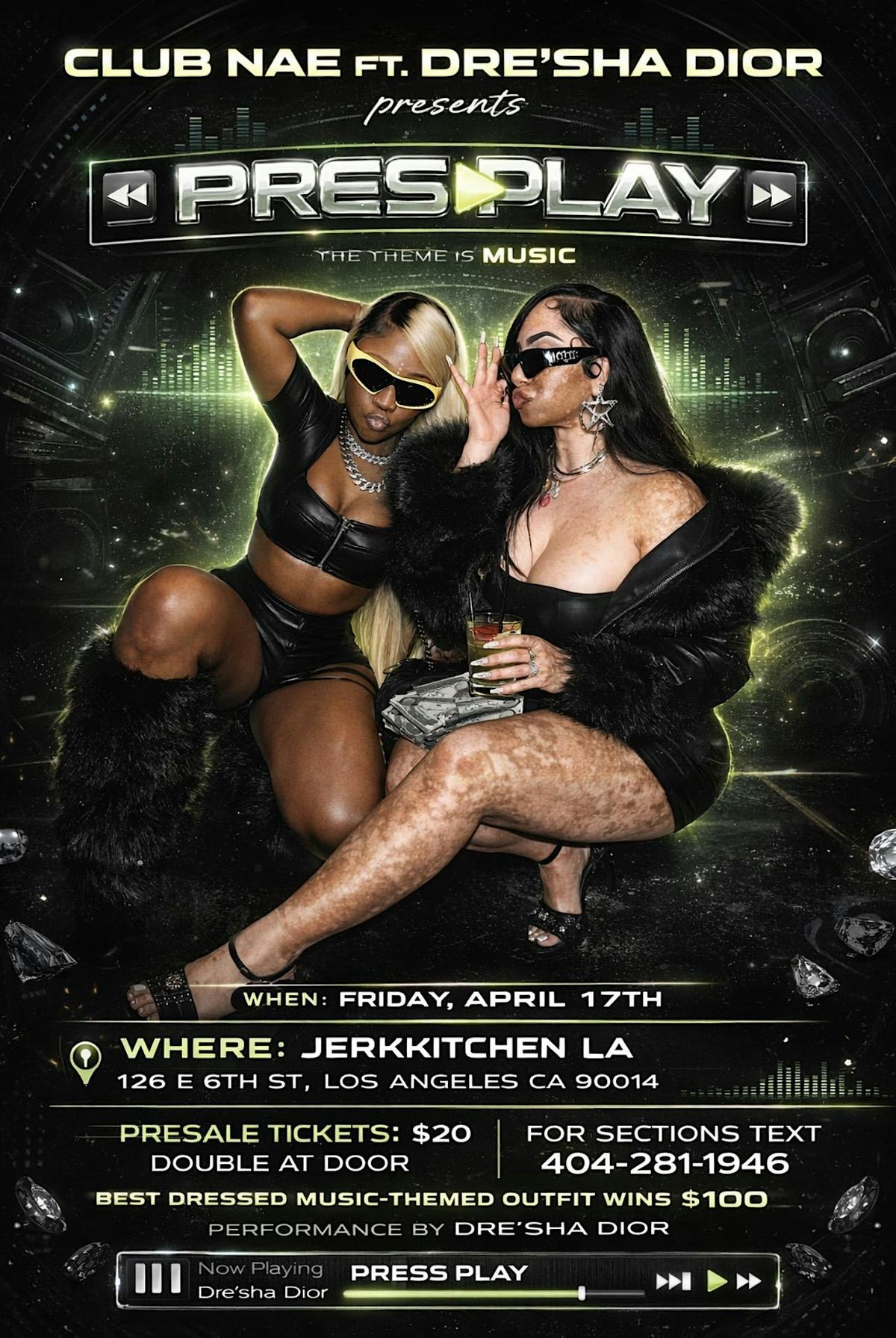 Club Nae Ft. Dre\u2019sha Dior presents \u201cPress Play\u201d Get ready to vibe at Club Nae Ft. Dre’sha Dior’s “Press Play” – the theme is music! 9pm-1am best dressed music costume/ outfit wins 100$