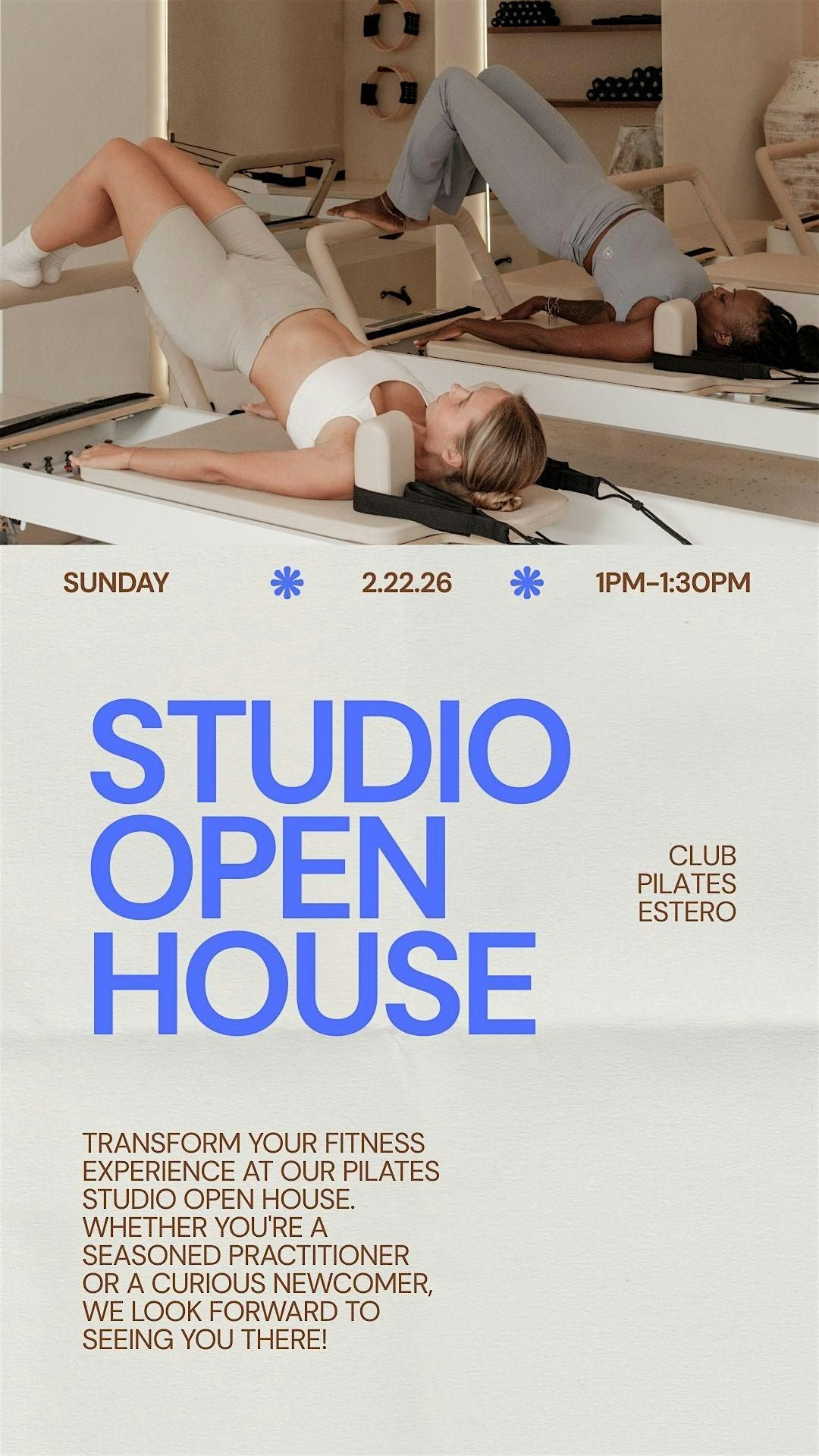Join us for a FREE Intro to Club Pilates class on Sunday, February 22nd at 1:00 PM. This beginner-friendly class is designed to introduce you to our low-impact, full-body workout that focuses on strength, flexibility, balance, and core control—no experience required!