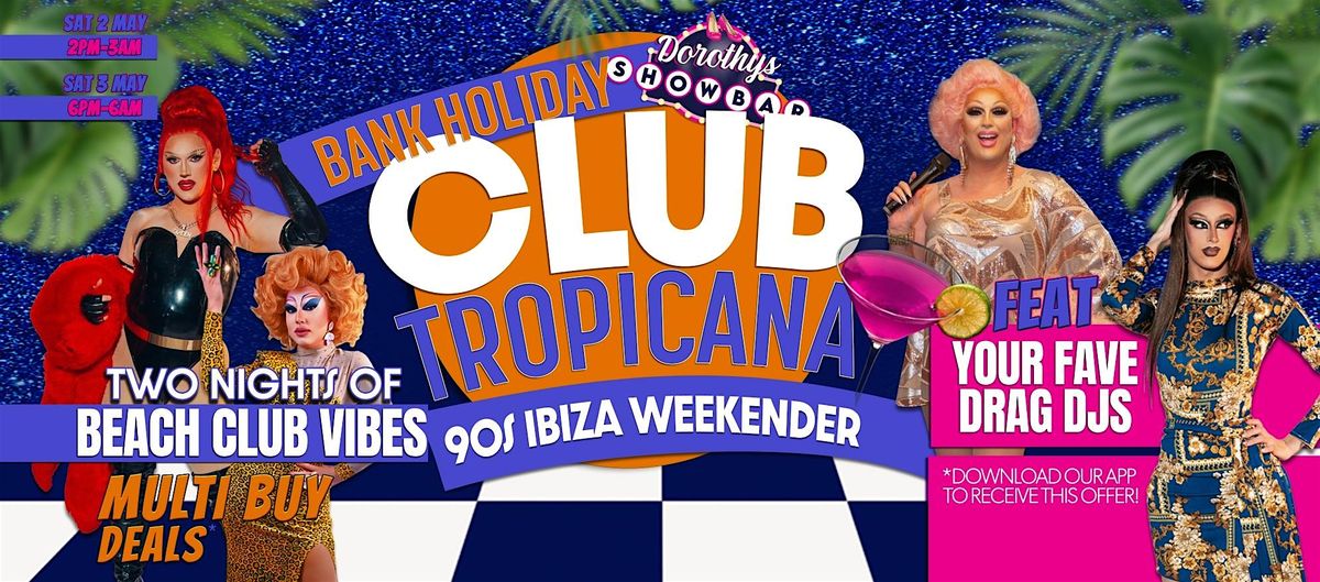 Get ready to escape to the ultimate throwback party as Club Tropicana: 90s Ibiza Weekender lands at Dorothy’s Showbar, Swansea this May Bank Holiday!
