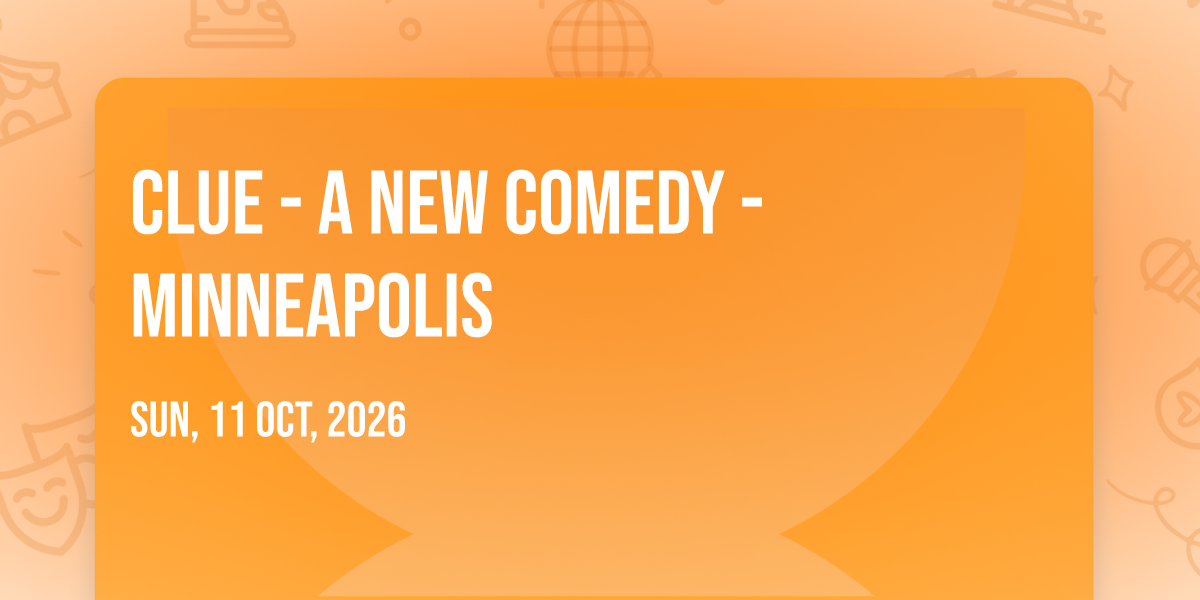 π Location: 44.9763, -93.2775β¨ Discover the extraordinary at Clue - A New Comedy - Minneapolis, where magic meets reality in ways you've never imagined! ποΈ Set in Orpheum Theatre - Minneapolis nestled in bustling Minneapolis, MN, this event promises to be a landmark occasion. π Taking place on October 11th, 2026 at 11:30 PM, it's going to create an atmosphere where every moment becomes a cherished memory. π Immerse yourself in an experience crafted with attention to every detail, designed to surprise and delight at every turn. They have worked tirelessly to ensure this event exceeds all expectations, bringing together elements of entertainment, innovation, and pure joy. π Don't miss your chance to be part of this remarkable journey!