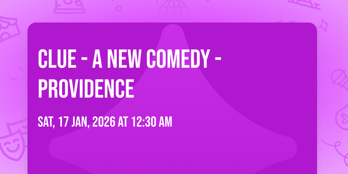 ? Location: 41.8211, -71.412? Welcome to Clue - A New Comedy - Providence, where the impossible becomes possible and dreams take flight! ?️ Join us at Providence Performing Arts Center in the heart of Providence, RI for an event that will redefine your expectations. ? On January 18th, 2026 at 11:30 PM, witness the transformation of space and time into something truly magical. ✨ It's a curated experience combining the best of innovation, entertainment, and community spirit, creating moments that will be remembered for years to come. Whether you're a first-time visitor or a seasoned enthusiast, prepare to be amazed. ? Book now to ensure your place in this unforgettable experience!