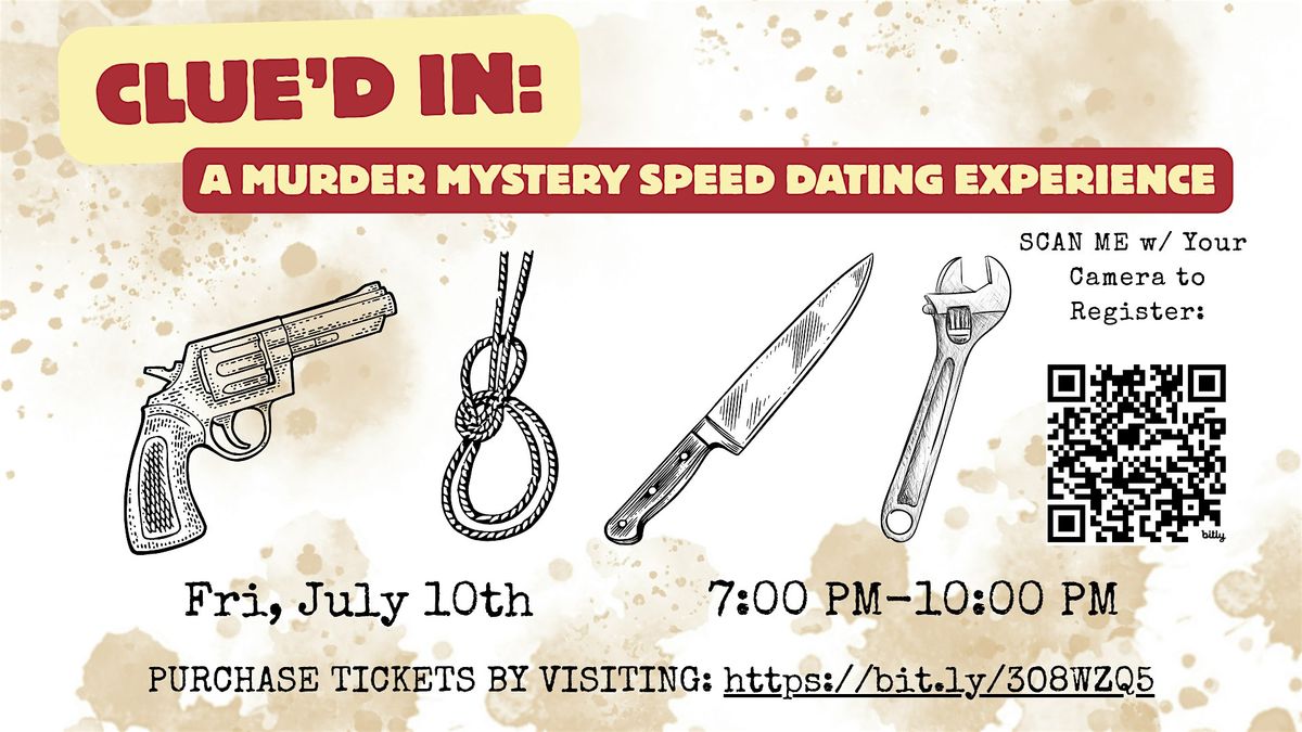 Clue'd In: A M**der Mystery Speed Dating Experience Friday, July 10th | 7:00 PM – 10:00 PM | Registration starts at 6:45 PM