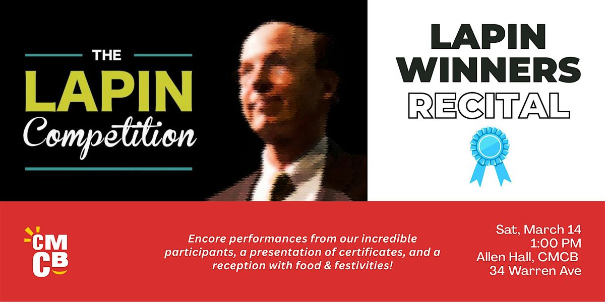 The Lapin Competition, named in honor of former CMCB Executive Director David Lapin, is an annual CMS event where solo students will perform their studied instrument and compete for 1st, 2nd, and 3rd place prizes. Our 2026 Competition will take place over the following dates: