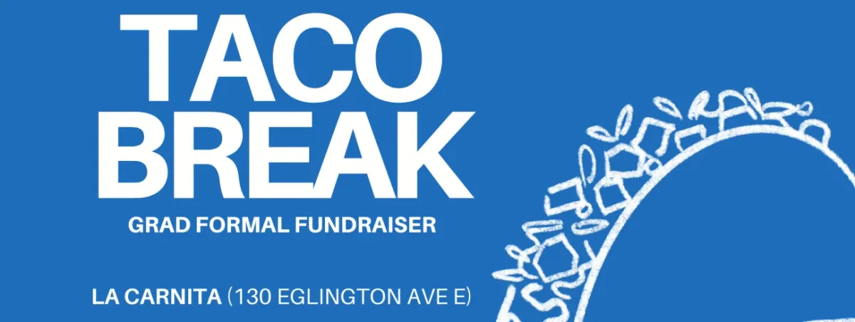 CMCC x CCNM Taco Break is a collaborative spring social bringing students from both campuses together for a night of tacos and connection. Whether you're celebrating, networking, or just looking for a fun night out, this is your chance to mix, mingle, and make memories with future colleagues.Enjoy great food, great vibes, and an even better cause. All proceeds will be split evenly between the CCNM and CMCC grad funds, helping support end-of-year celebrations and milestone events. Join us from 7-12PM. Come hungry. Leave connected. 🌮✨
