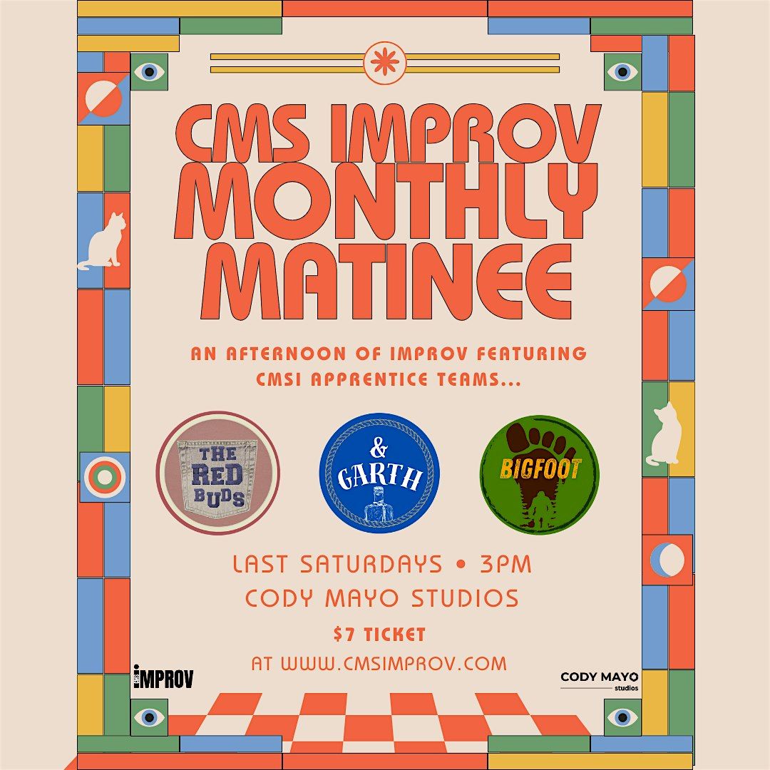 Laughter in the middle of your day? Sign me up! The CMSimprov Monthly Matinee will feature students who have graduated our CMSimprov program. These students are continuing to sharpen their craft and are excited to light up the stage with their technique.