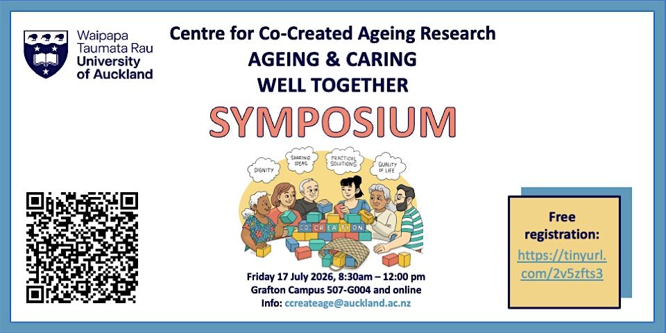 Save the date and register to participate in this symposium to listen, exchange insights, and collaborate in advancing equity, wellbeing and involvement of older adults in Aotearoa New Zealand.