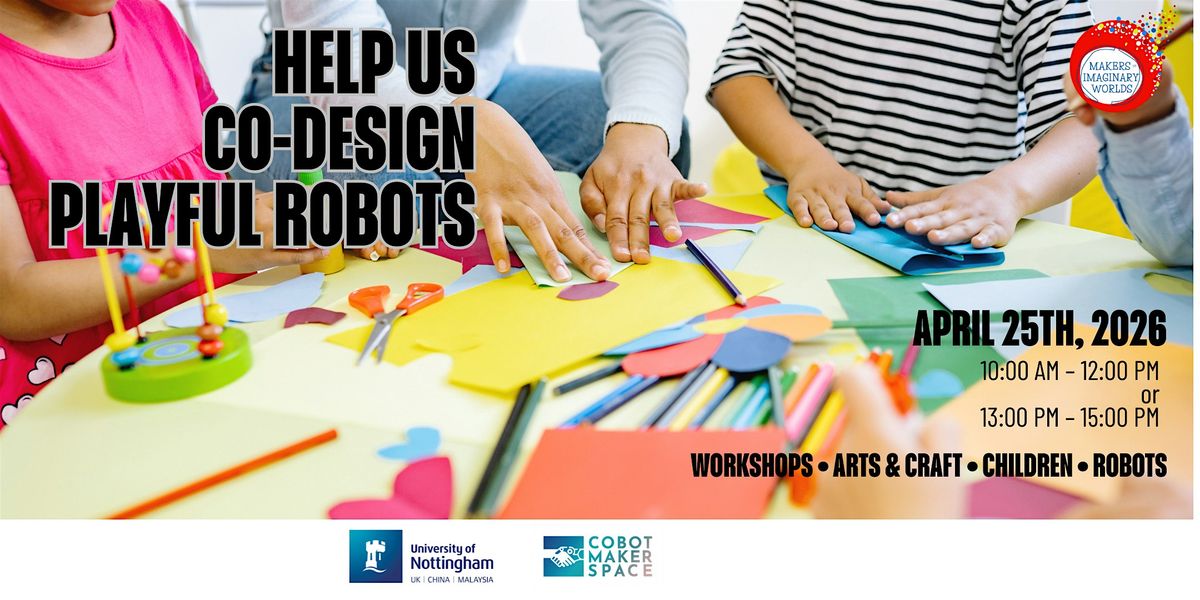 In this session, participants will work alongside artists and researchers from Cobot Maker Space, at the University of Nottingham to explore how robots can move, respond, and express themselves. Through creative craft activities and simple prototype-building, children will develop and share ideas about how they imagine robots — what they might look like, how they behave, and what they can do. Children will be encouraged to make models, sketch ideas, and build playful concepts that inspire new robotic behaviours.