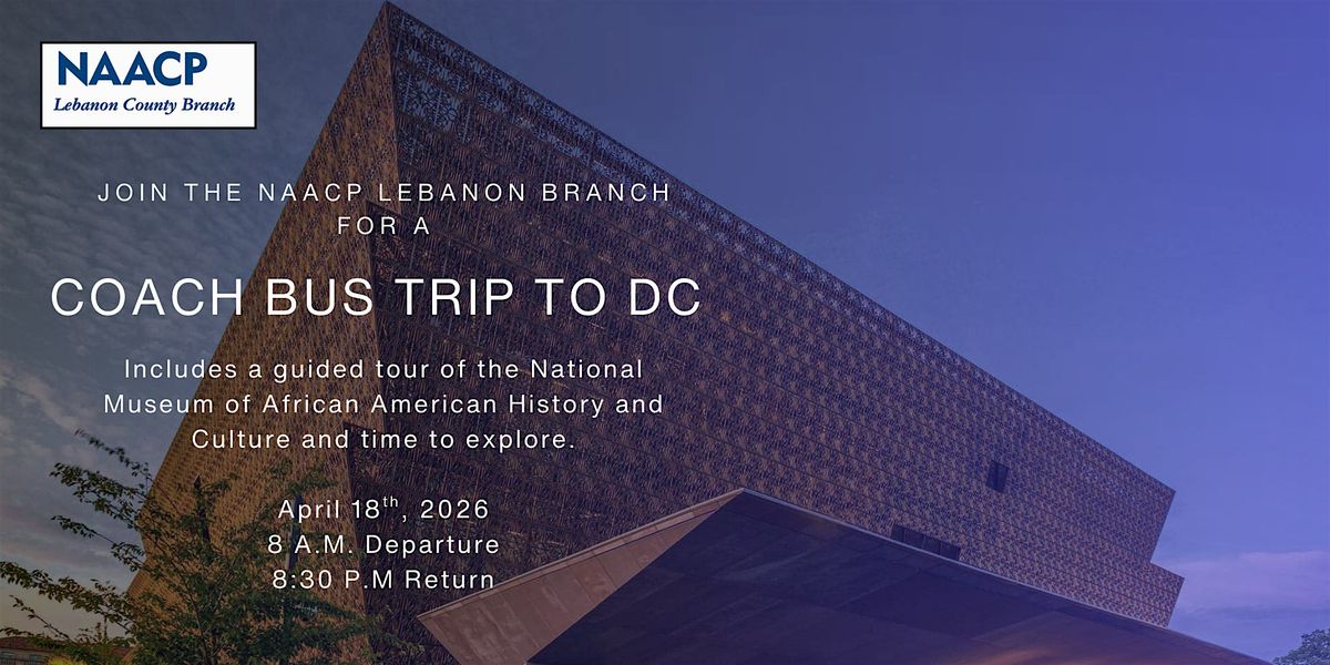 Join the Lebanon County NAACP for a coach bus trip to Washington, D.C. and guided tour of the National Museum of African American History.