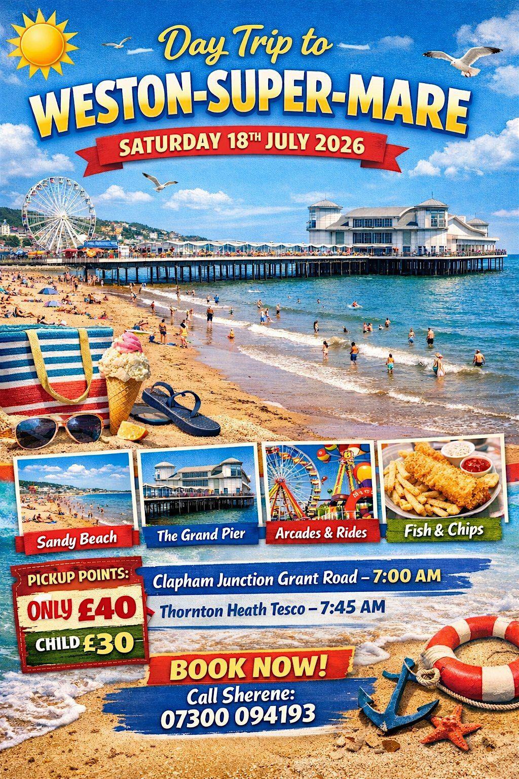 Join us for a fun day trip exploring the lovely seaside town of Weston-Super-Mare! Enjoy fresh sea air, stroll along the pier, and soak up the relaxed vibes. Perfect for a break from the daily grind, with plenty of spots to grab a bite, play arcade games, or just chill on the beach. Don’t miss out on this awesome in-person adventure!