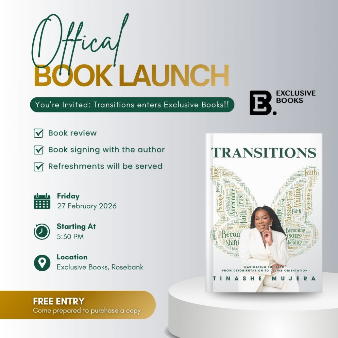 Join us for an unforgettable evening where you can get your exclusive signed copy and connect with the author in person. Let the wisdom of 'Transitions' guide you through your own transformative journey.