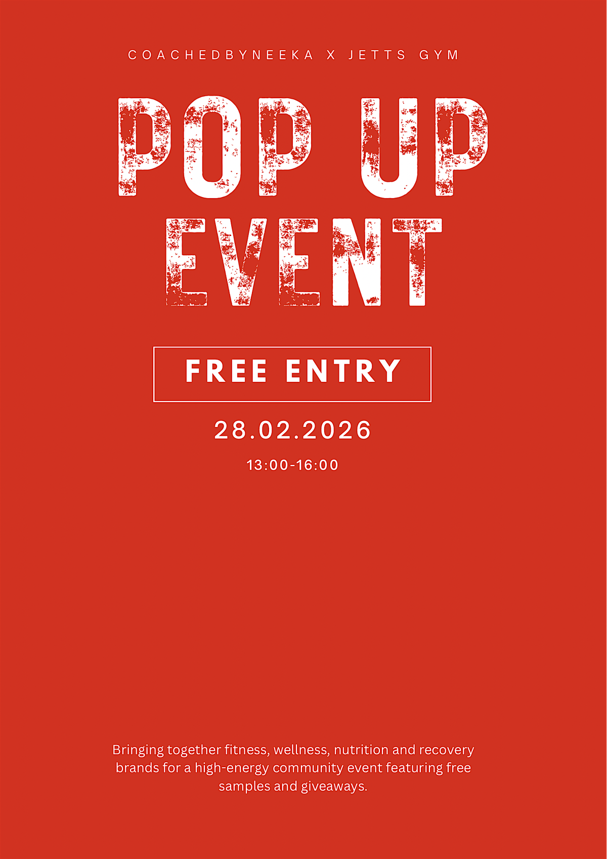 Join us for a high energy fitness and wellness pop-up event hosted by Coached by Neeka in collaboration with Jetts Gym Oxford Road.
