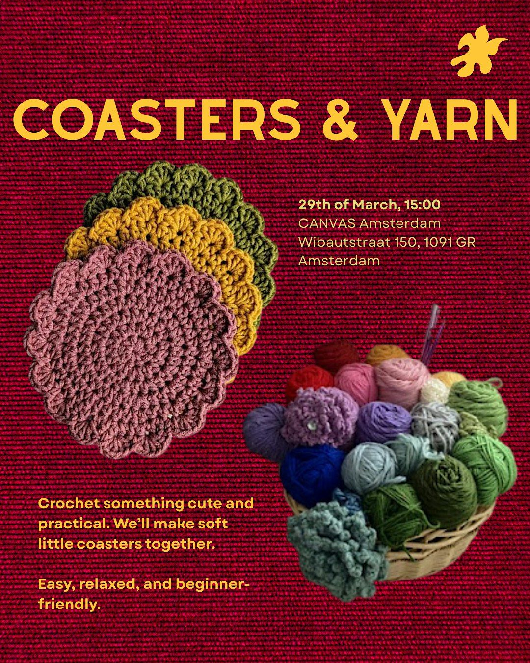 this is a crochet workshop where we’ll make soft little coasters together.