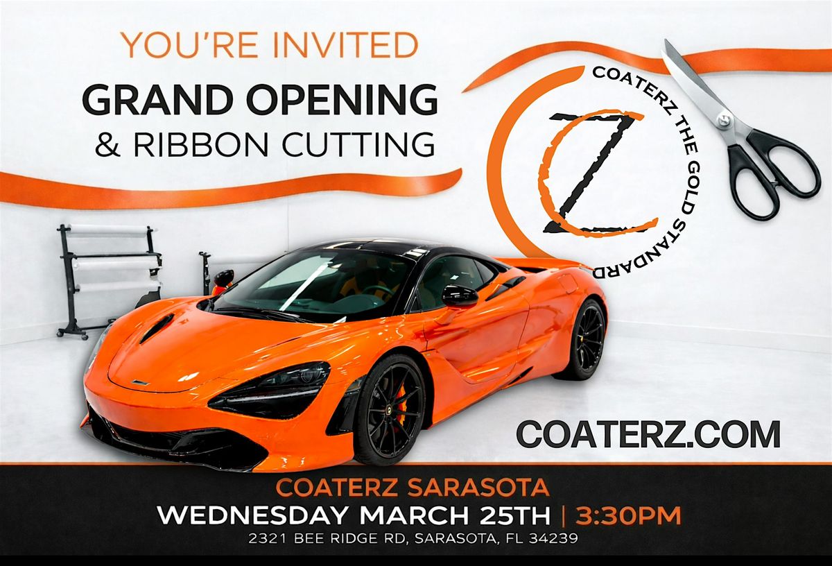 Join us as we celebrate the Grand Opening of Coaterz Sarasota with an official Ribbon Cutting by the Chamber of Commerce!Coaterz specializes in high-quality paint protection for your vehicle, including PPF and ceramic coating designed to enhance durability, shine, and long-term performance for vehicles and more.Learn more: https://coaterz.com/Come meet the team, tour the new Sarasota location, and see their work up close.Wednesday,