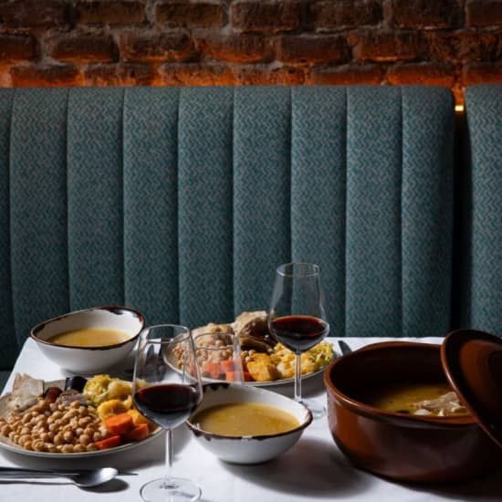 Qué vas a disfrutar 🍽️ Un cocido madrileño, uno de los platos más emblemáticos de la gastronomía española, para 2 personas 👉 Un plan redondo que combina buena comida, bebida incluida y un final dulce irresistible ⭐ Un restaurante con historia en el corazón de la Plaza Mayor Información 📅 Fecha y hora: selecciona la fecha y hora que quieras directamente en el selector de entradas 📍 Lugar: Restaurante Arrabal, Plaza Mayor, Madrid Menú Cocido Madrileño para 2 personas en Arrabal, Madrid Cocido madrileño completo para dos personas 2 bebidas a elegir: copa de vino, cerveza, agua o refresco Tarta de la abuela para compartir Descripción Disfruta de una experiencia perfecta para saborear sin prisas Un plan ideal para los amantes de la cocina de siempre y para quienes buscan una experiencia gastronómica auténtica a un precio cerrado. Reserva ya tu mesa y déjate conquistar por el sabor de Madrid. ¡Disfruta de tu menú de cocido Madrileño para 2 personas en Arrabal!