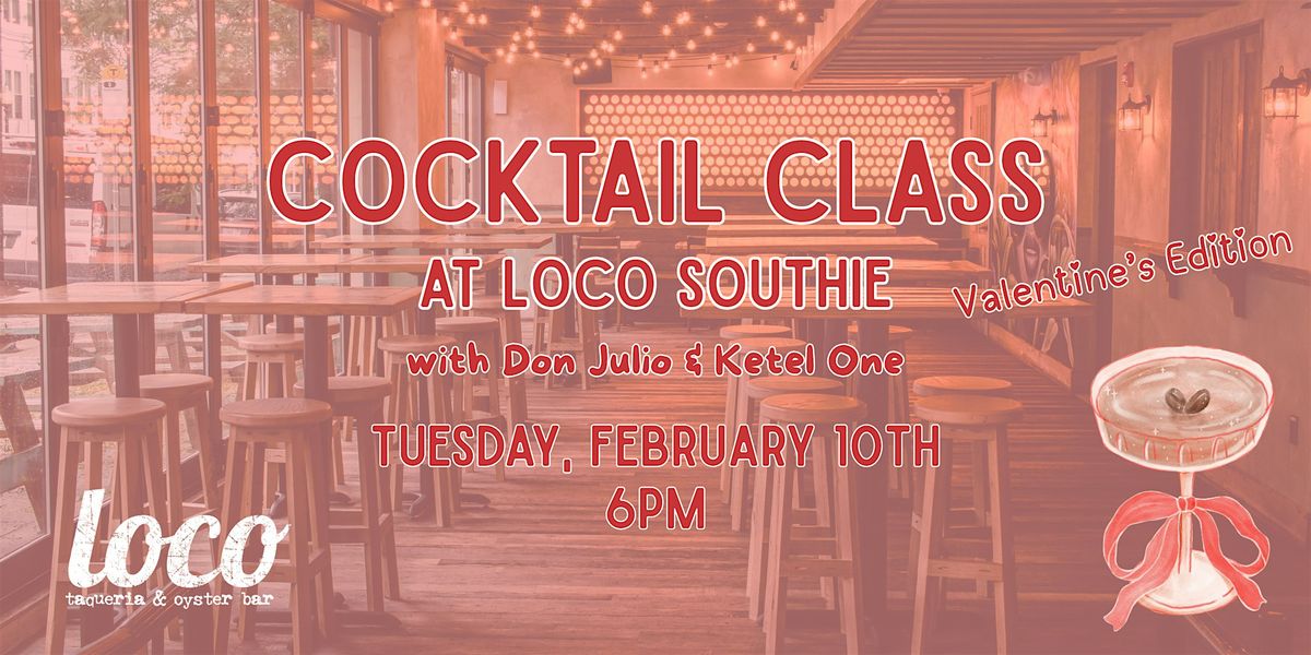 Join us at Loco Southie on Tuesday, February 17th at 6:30pm for a cocktail class led by Jessica Lyons of Diageo Hospitality. Over 45 minutes you’ll mix up and enjoy both a Don Julio Margarita and a decadent Red Velvet Ketel One Espresso Martini. You'll learn about the spirits & how to craft the perfect drink, knowledge you can take with you!