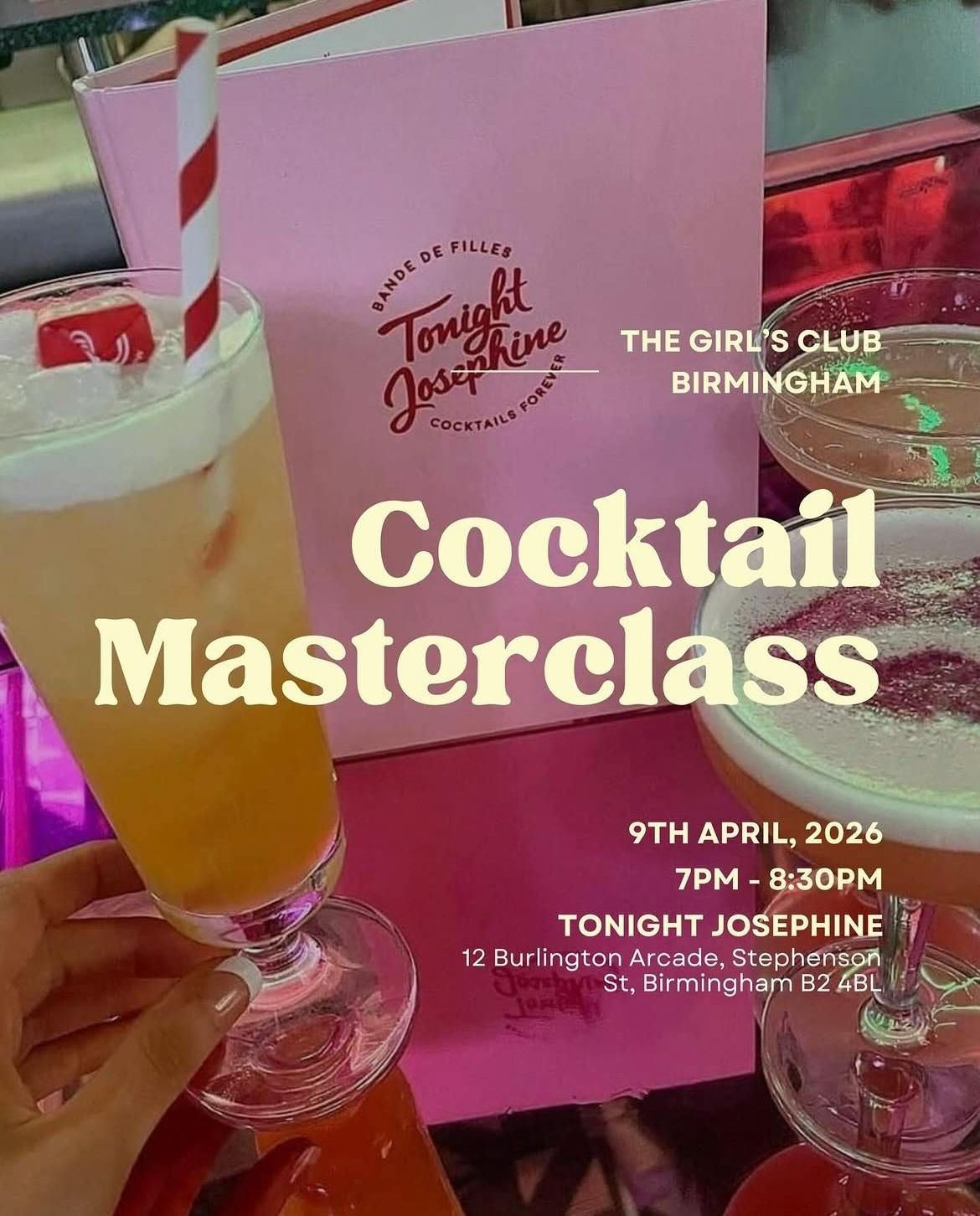 We are veryyyy excited to be teaming up with the pinkest, coolest bar in town, @tonightjosephinebirmingham for a cocktail (and mocktail!) masterclass evening!! 🍸💖✨ how better to spend your thursday evening than with us shaking up and creating your own cocktails behind the bar, learning all Jospehine’s cocktail secrets & playing games together too! Thursday 9th April 7-8:30pmTonight Josephine 12 Burlington Arcade, Stephenson St, Birmingham B2 4BL