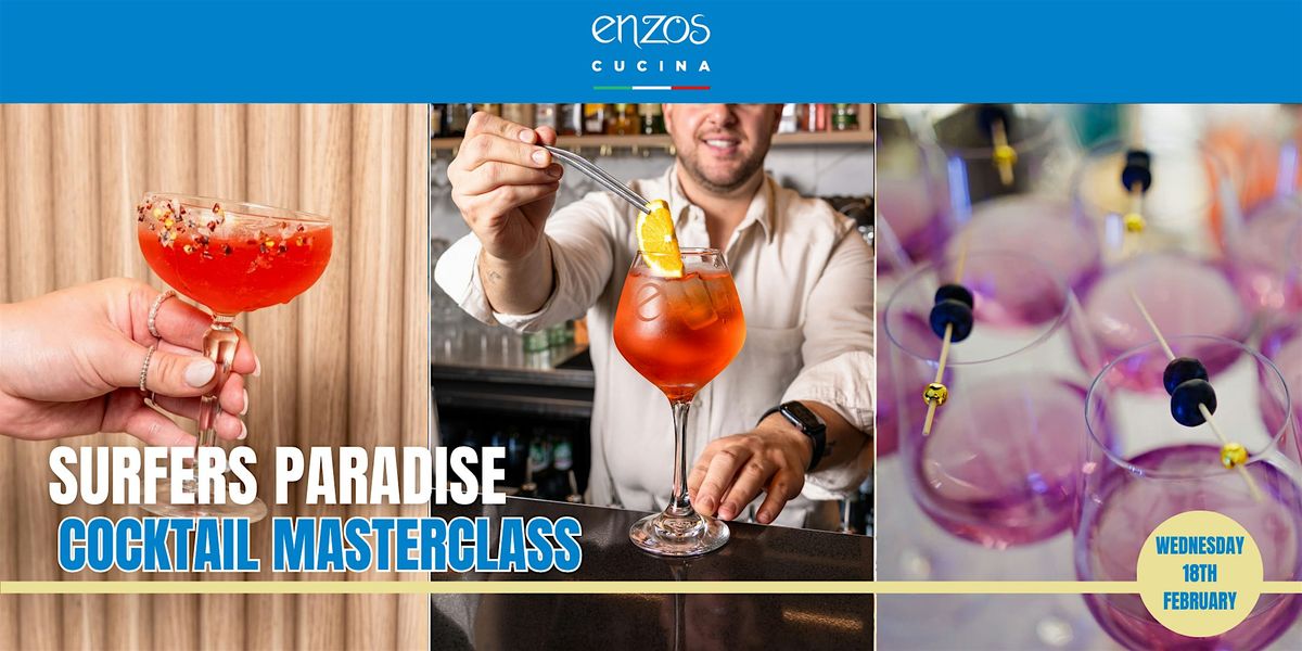 Ready to upgrade your cocktail game? Join our Cocktail Masterclass Experience at Enzo’s Cucina Surfers Paradise, where you’ll learn, taste and enjoy — Italian style.