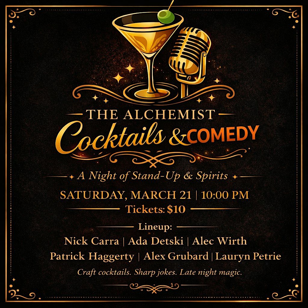 Looking for something better than another night on the couch?Join us Saturday, March 21 at 10PM for a night of stand-up and craft cocktails