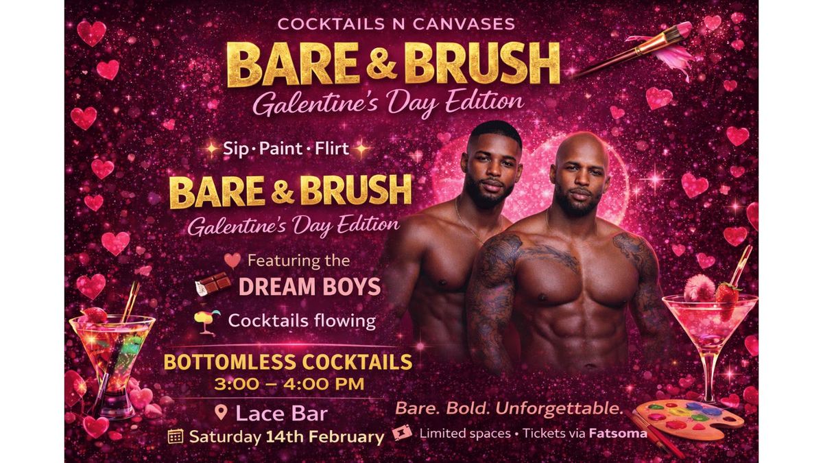 Cocktails N Canvases- Bare and Brush : Galentine's Day Edition- ( with Naked Dream Boys) Sip and PaintBare and Brush: Galentine's Day Edition