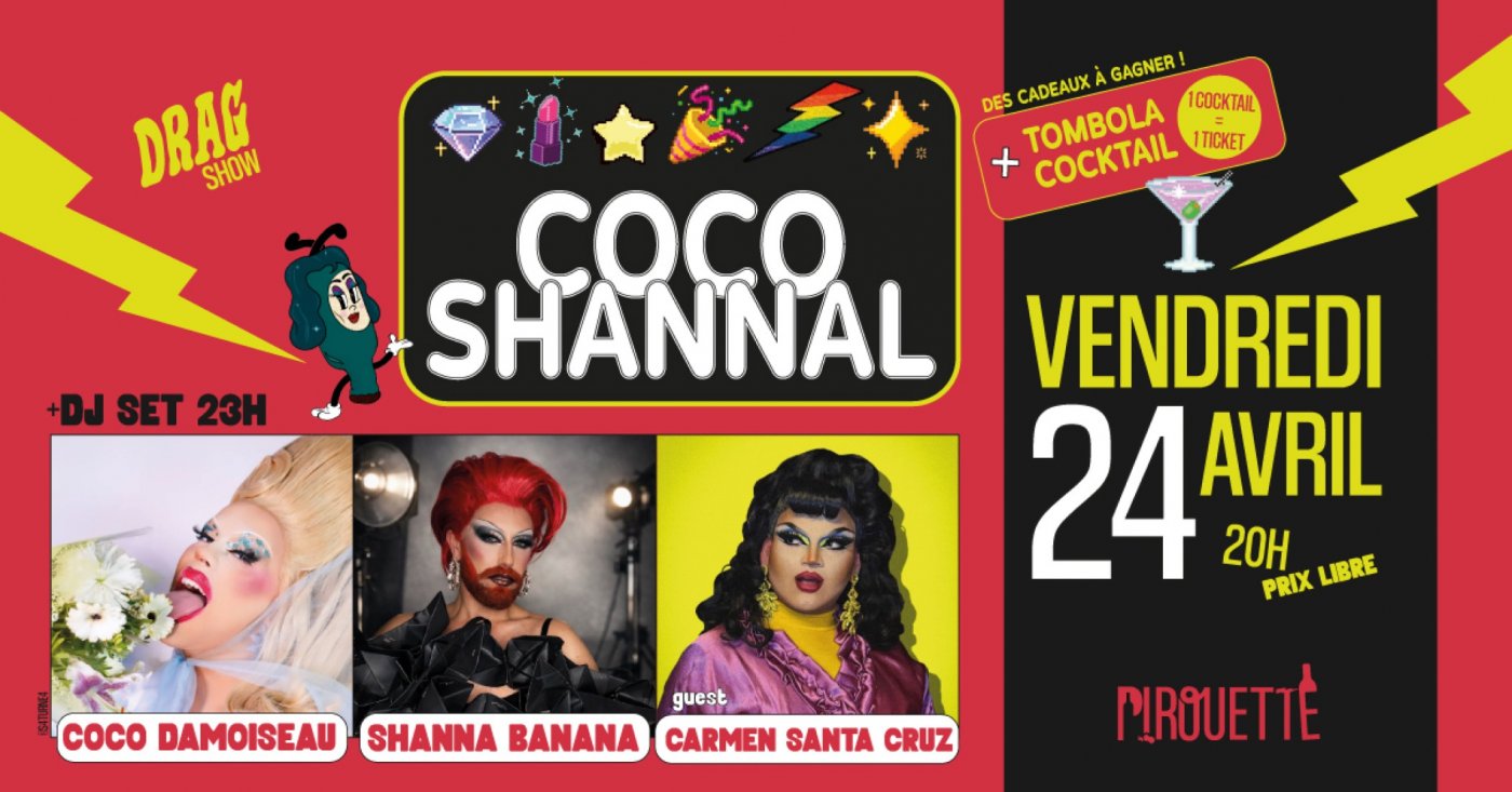 Coco Damoiseau & Shanna Banana invitent Carmen Santa Cruz (Bordeaux) pour le dragshow du printemps à Pirouette !