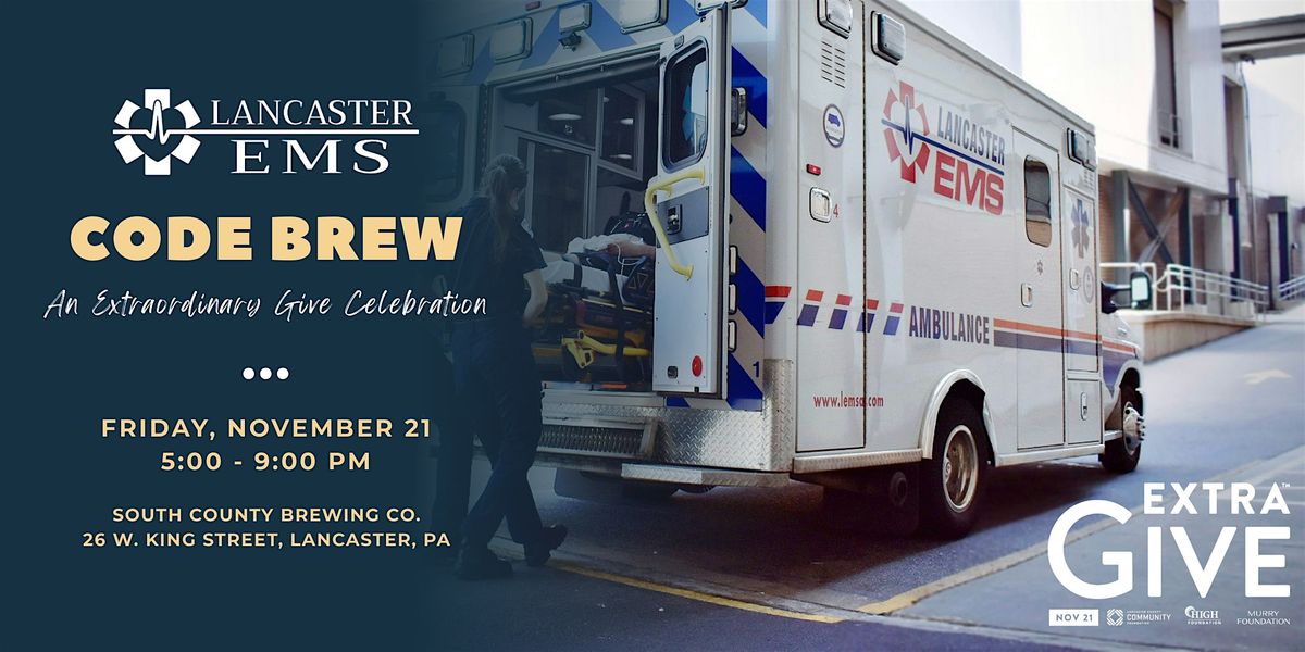 Join Lancaster EMS in partnership with South County Brewing to save lives as we celebrate the Extraordinary Give! Stop by anytime between 5-9 PM for drinks, bites, and fun as we build a safer future for our community. Enjoy a delicious craft beer poured by one of our special guest bartenders! We will also have a giving station available to help you make your ExtraGive donations.