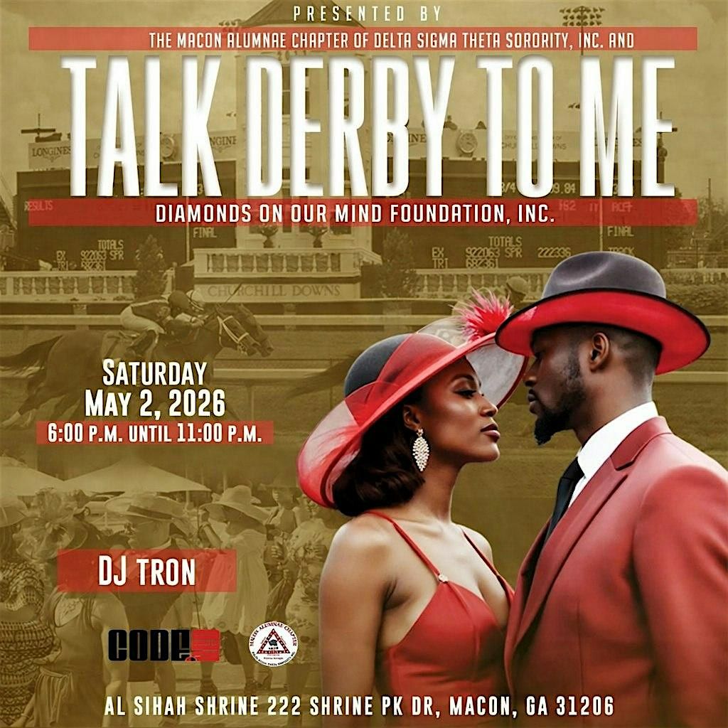 The Macon Alumnae Chapter of Delta Sigma Theta Sorority, Inc. and Diamonds on Our Mind Foundation will host Talk Derby 2026 on Saturday, May 2, 2026. The event will be held at the Al Shiah Shrine located at 222 Shrine Park Drive in Macon, GA. Guests are encouraged to show off their spring hats and fascinators, bow ties, and sundresses, as our theme is “Talk Derby to Me.” Join us for a jovial experience starting at 6:00 pm – 11:00 pm with DJ Tron spinning tunes.